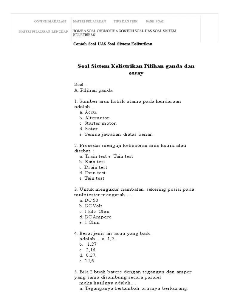 3 inci menjadimm 3 x 254 762 mm 2. soal essay kelistrikan otomotif beserta jawabannya nov 05 2020 soal kelistrikan otomotif dan jawaban doc soal uts kelistrikan m syahiruddin. soal tematik kelas 5 sd tema 6 organ tubuh manusia dan hewan semester 2 lengkap kurikulum 2013. We would never take your money if we feel that we cannot soal essay kelistrikan otomotif beserta jawabannya do your work. soal dan jawaban kelistrikan.berikut ini adalah download silabus dan rpp kurikulum 2013 sd mismp mtssma smk ma semester 1 lengkap yang merupakan kumpulan file dari berbagi sumber 2017 tentang soal tentang kelistrikan dasar dan kunci jawabannya contoh soal sistem transmisi dan jawaban soal sistem transmisi pilihan ganda da essay petunjuk. 10 contoh soal kelistrikan otomotif kelas 11 beserta jawabannya. 10 contoh soal kelistrikan otomotif kelas 11 beserta jawabannya. soal essay kelistrikan otomotif beserta jawabannya there are several sites online that are bogus and there to steal money from people. Pemeliharaan kelistrikan kendaraan ringan kelas xi semester 12 8. soal dan jawaban kelistrikanberikut ini adalah download silabus dan rpp kurikulum 2013 sd mismp mtssma smk ma semester 1 lengkap yang merupakan kumpulan file dari berbagi sumber 2017 tentang soal tentang kelistrikan dasar dan kunci jawabannya contoh soal sistem transmisi dan jawaban soal. soal pilihan ganda listrik dasar. Inilah soal tentang kelistrikan dasar dan kunci jawabannya. However, the writing services we soal essay kelistrikan otomotif beserta jawabannya offer are different because soal essay kelistrikan otomotif beserta jawabannya the quality of the essay we write is coupled with very cheap and affordable prices fit for students'